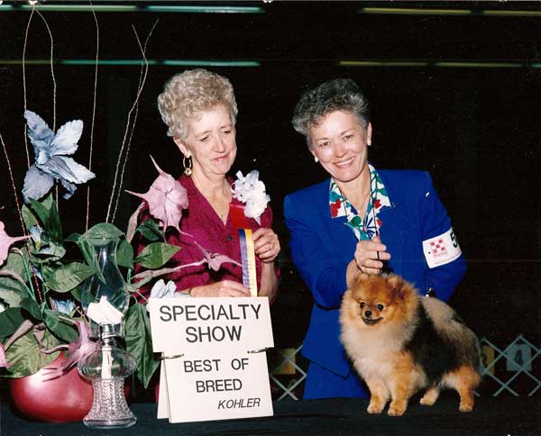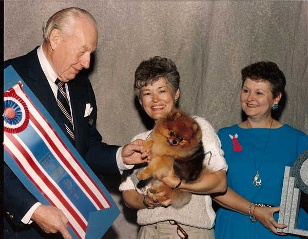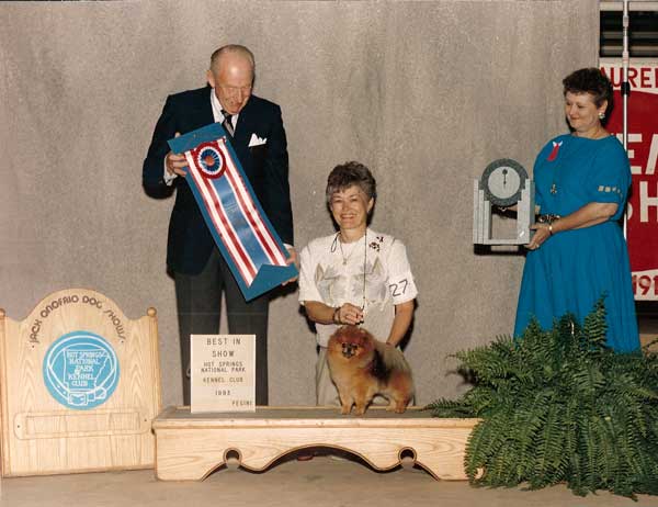 | Mighty was born to the show ring. He loved every minute of showing and demanded the eye of judges and spectators alike. | Shown winning an All-Breed Best In Show under judge Anthony Hodges | Mighty earns one of his Specialty Best In Shows under judge Barbara Camp |